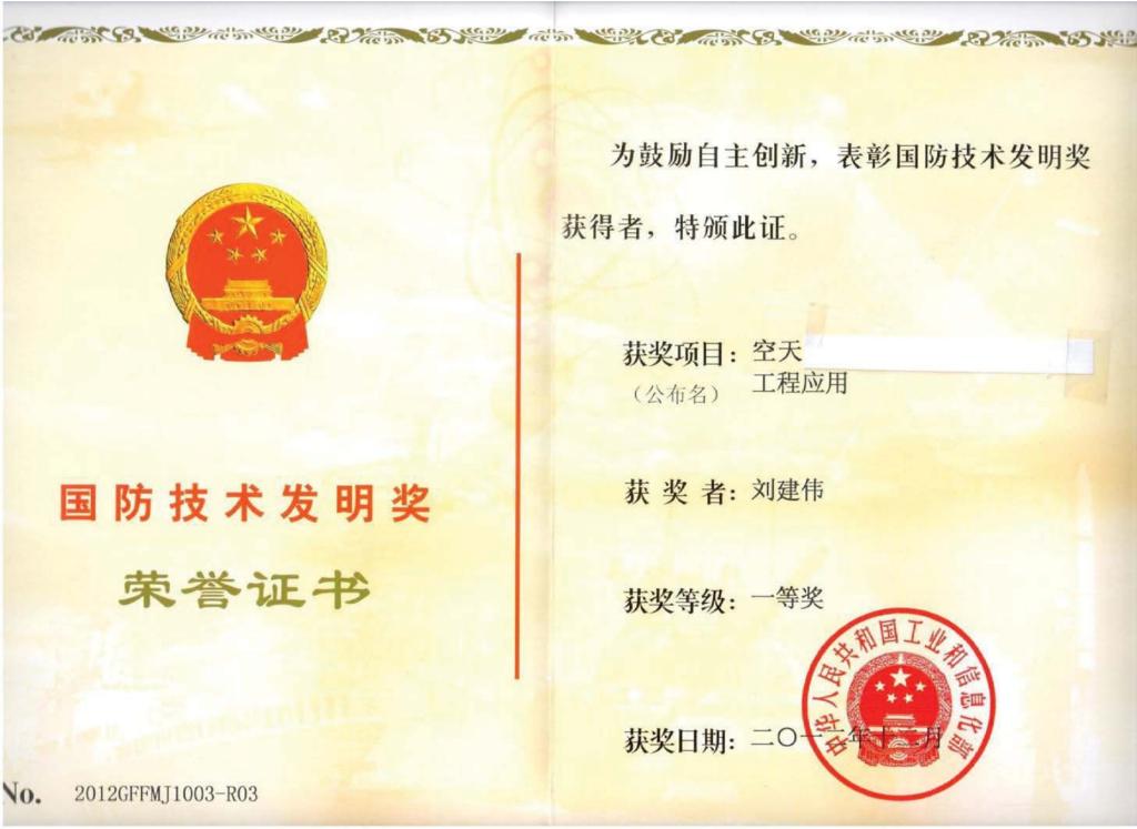 5. 2012年12月,空天高速数据传输加密技术及工程应用,2012年国防技术发明一等奖